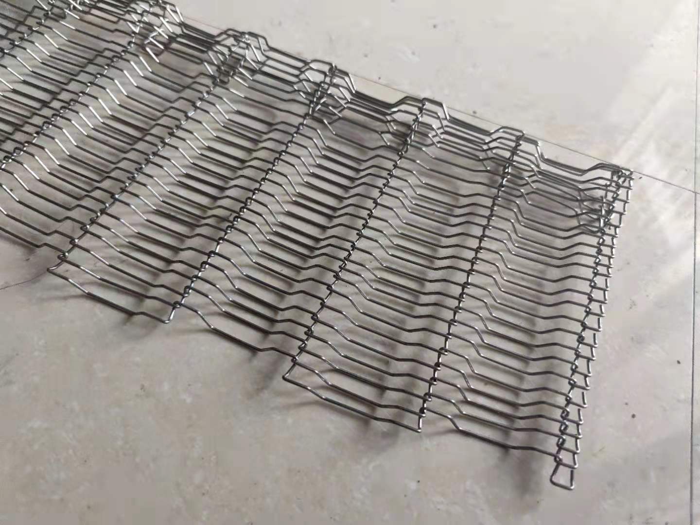 粉末冶金燒結網帶是多用于粉末冶金制品燒結爐,將同一方向的螺線交互編入,在交叉處把力骨線穿過去的型式。